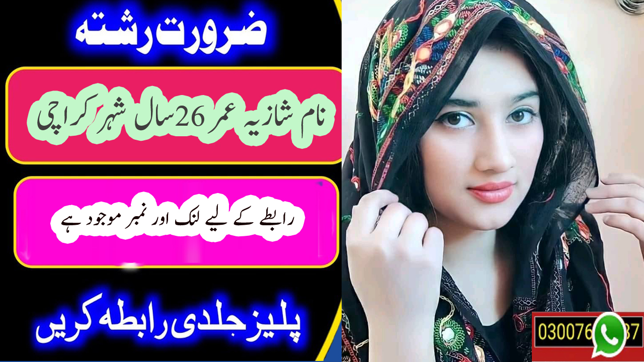 نام شازیہ ہے عمر26 برس ہے کسی چیز کی کمی نہیں بس اچھے رشتے کی تلاش ہے لڑکا بیشک غریب ہو میری پوری بائیو کیلیۓکمنٹ کریں .شہر کراچی