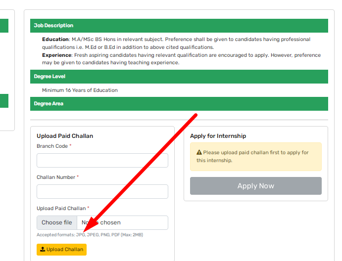 Note: Upload option not come first time when you genrate challan , you should come again from apply job and view job and then you see upload , so please do,nt worry and not confuse